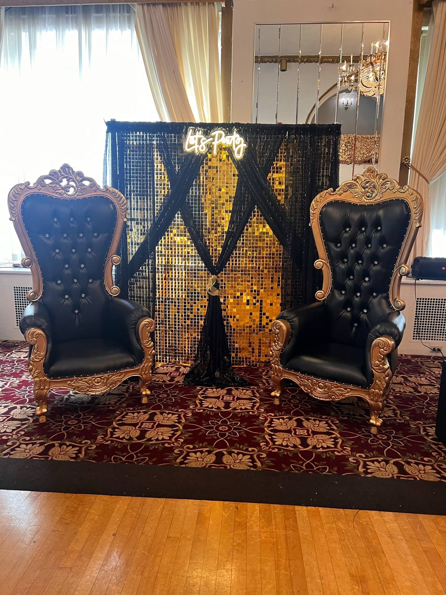 Black and gold throne chair